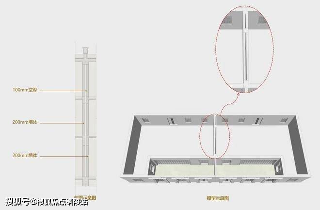 与其他风貌共用一堵分户墙不同的是,忻园的风貌别墅采用双层分户墙做法,每户之间没有共用墙。200mm厚度的墙体,中间还设置了100mm空腔,避免邻里的相互影响,带来舒适静谧的居住感受。
