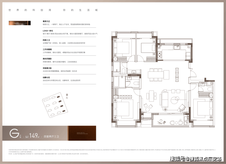 建面约149㎡4房2厅3卫,得房率高达约83%,更是南闵行乃至全市都十分稀缺的存在。