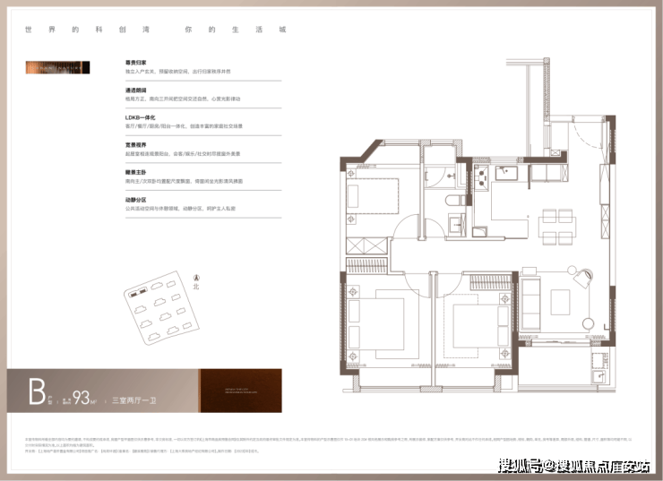 如约100㎡3房户型,打破了传统紧凑型小户型的局限,其得房率接近81%,远超同类市场产品,赋予了室内空间前所未有的宽敞感。
