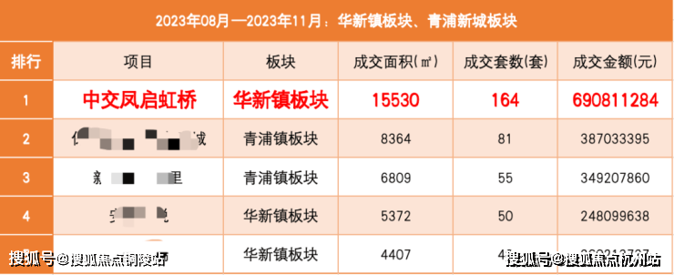 作为热销10亿+的项目,继首开之后,中交凤启虹桥再次荣登8-11月华新、青浦镇板块在售新盘中,成交套数、成交面积、成交金额三大榜首!且远超第二名成交2倍之多!名副其实的实力选手!
