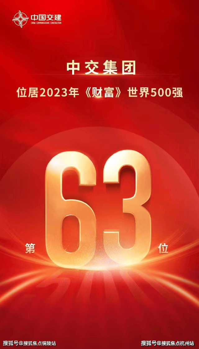2023年《财富》世界500强排行榜揭晓,中交集团以1382.70亿美元营业收入排名第63位!中交集团已连续16年荣登该榜单!
