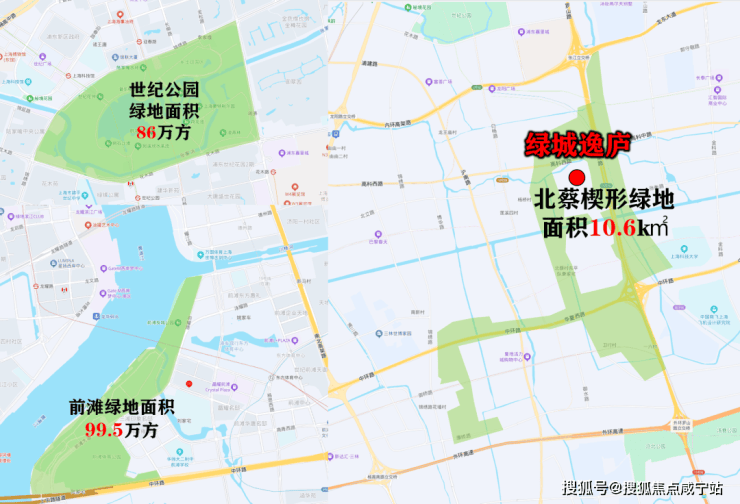 同时,绿城·逸庐所处的北蔡楔形绿地,规划约10.6k㎡珍稀城市绿地资源,这个体量约是世纪公园的7.5倍,前滩的3.7 倍!预计2027年年底完工!