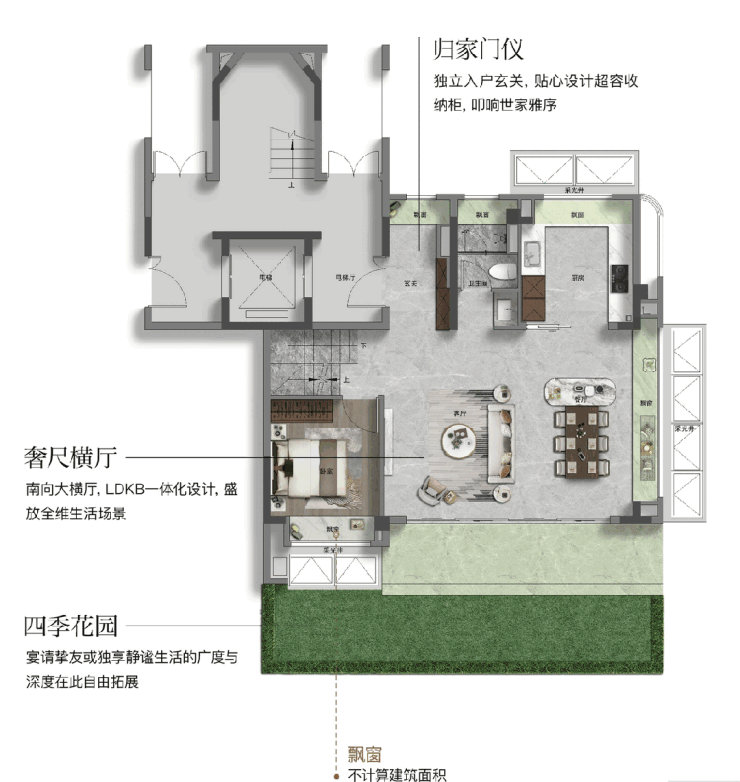 产品从独立入户梯厅开始,便奠定了归家的尊崇仪式与私密性。