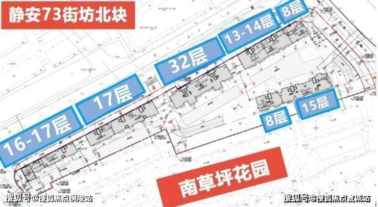 73街坊共分为南北两块,是老静安为数不多的纯住宅地块,北地块的高层住宅部分共将新建5栋8层至32层的住宅楼,总 住宅开发体量共约7.25万㎡,总套数仅有468套。