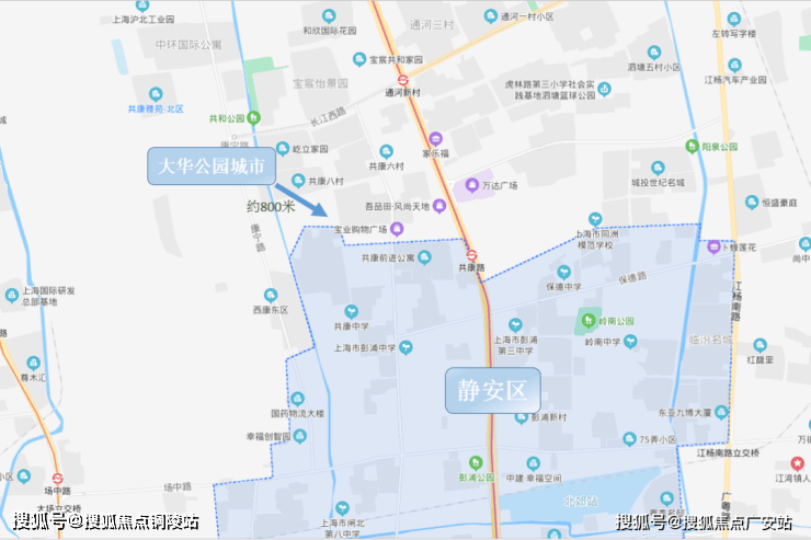 从地图上看,该地块距离静安区的直线距离只有800米,距离大宁核心区域仅约5公里,不仅离大宁国际商圈近,周边还有宝山万达、大华商圈等大型商业配套。