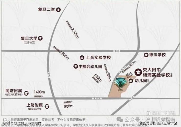 周边有中国福利会幼儿园、上海音乐学院实验学校、兰生复旦中学(国和路校区)、国和中学、市光中学、国和小学等基础教育设施,项目北侧紧邻在建的上海市交通大学附属中学杨浦实验学校(含九年一贯制及高中部)。(期房不承诺学区,以后期主管部门划分为准)