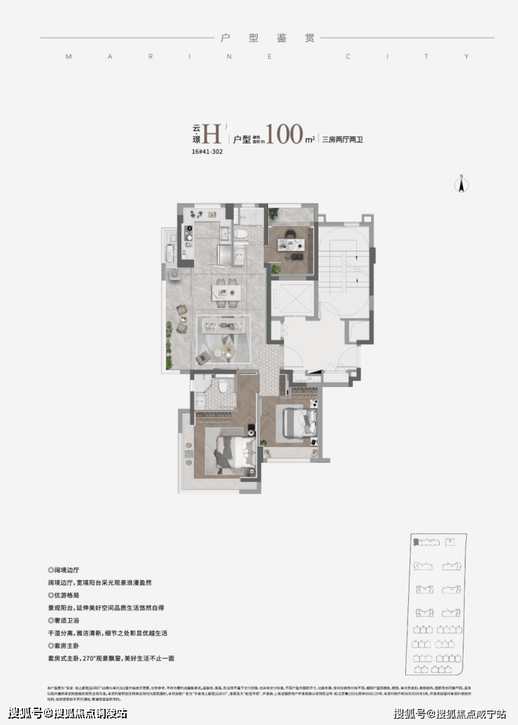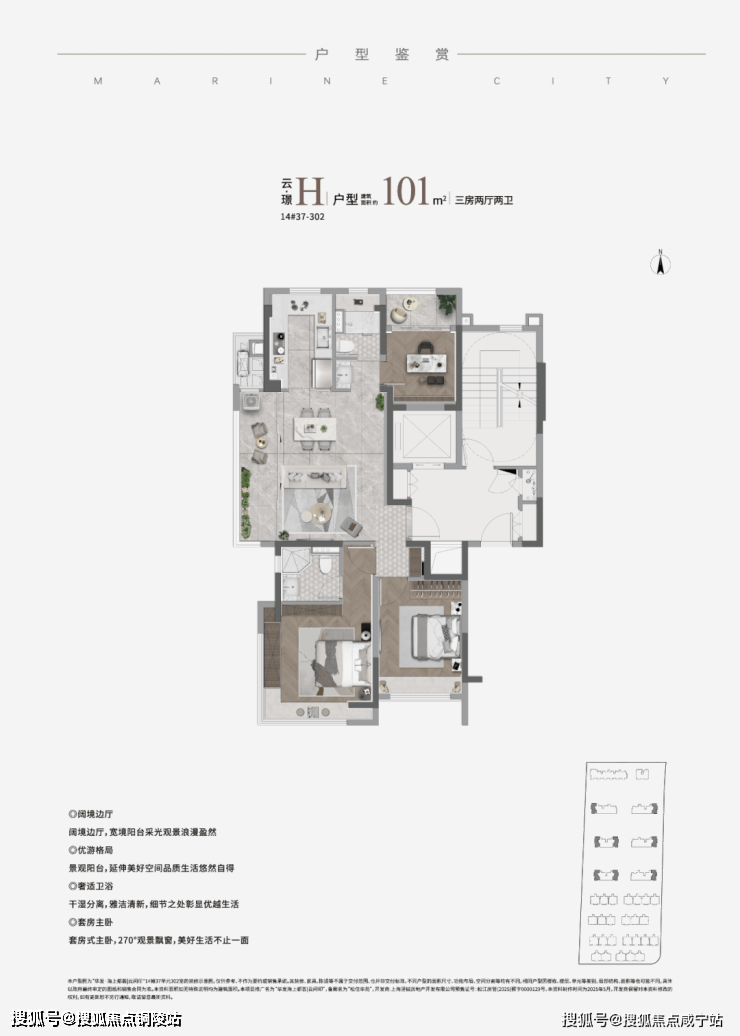 ②建面约99㎡H户型:三面采光,全能景观王炸边厅户型!