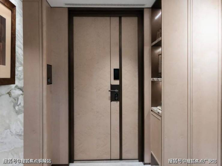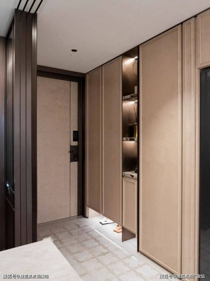 入户做了精致玄关柜,柜门为温润木饰面包裹,壁龛选用奢石映衬,质感非常棒。