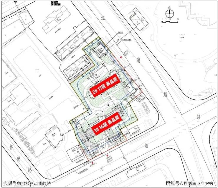 人行出入口、车行出入口、消防出入口,设置在南侧长阳路上,并设置1个临时上下客停车位;西侧江浦路设置人行出入口兼顾消防出入口