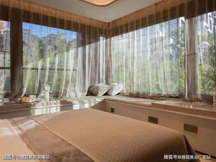 比如2#西端户型,通过北/南/西三向展开近36米连续玻璃幕墙,且西南向无遮挡,三件套城景一览无余。