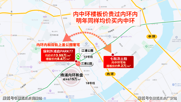 其一,七批次土拍,杨浦内中环宅地楼板价高达约9.2万/㎡,已高过内环内的保利外滩启PARK77(楼板价约8.6万/㎡)。