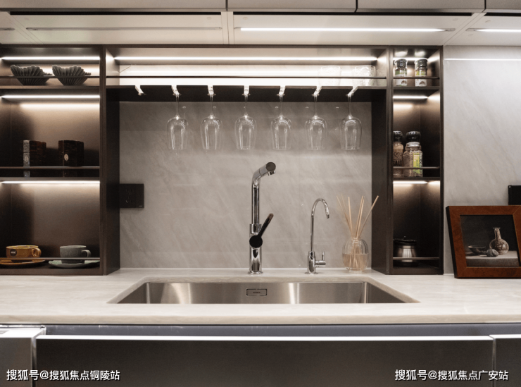 比如说餐边柜+操作台+洗手台一体化设置,让这个空间不再单独的满足于简单的吃饭、客厅休憩。