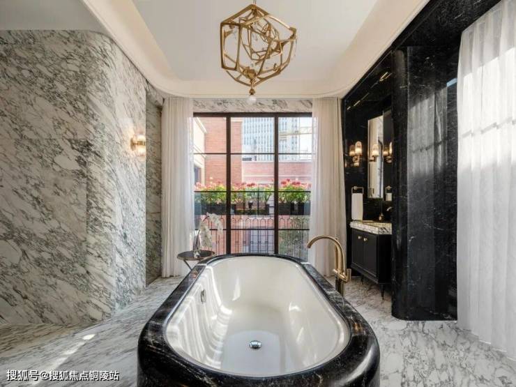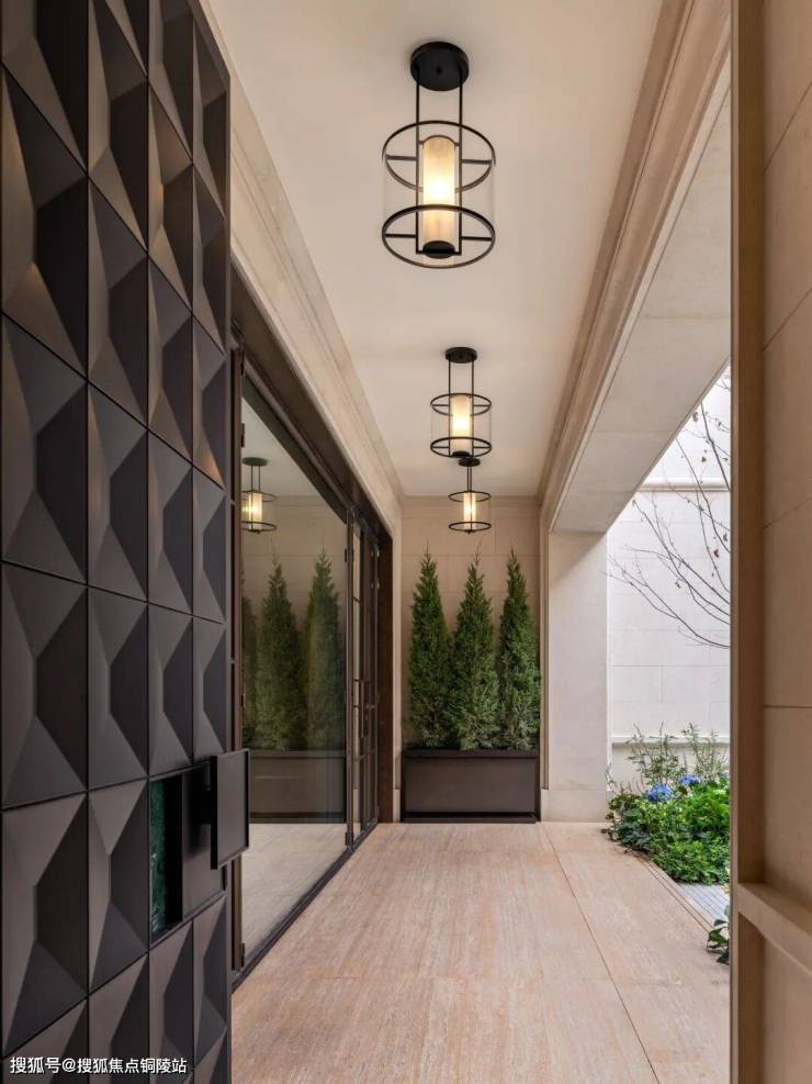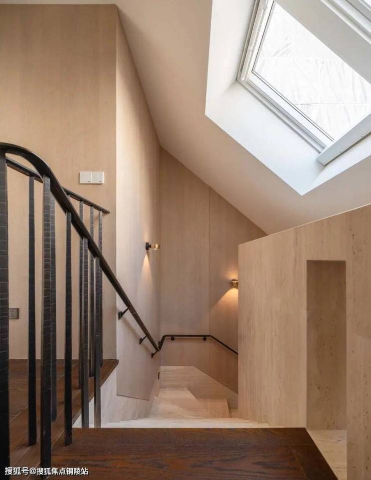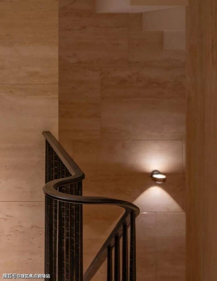 深铜色的栏杆和扶手融合传统与现代语汇,演变出一种当代型态,与现代白色洞石相映成趣,营造出优雅纯粹的意境。