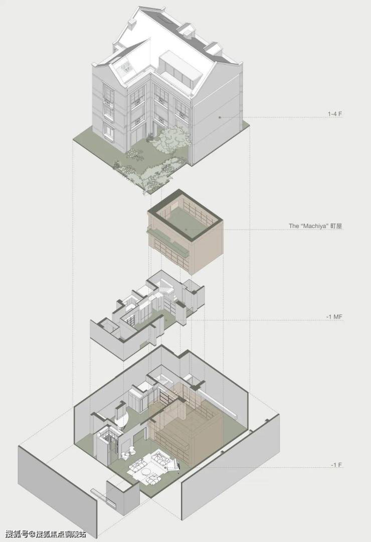 尽管有明确的结构分区和限制,我们还是将地下室视为一个整体空间。我们的方法是在空间中植入一个“町屋”(日本传统商住建筑)。