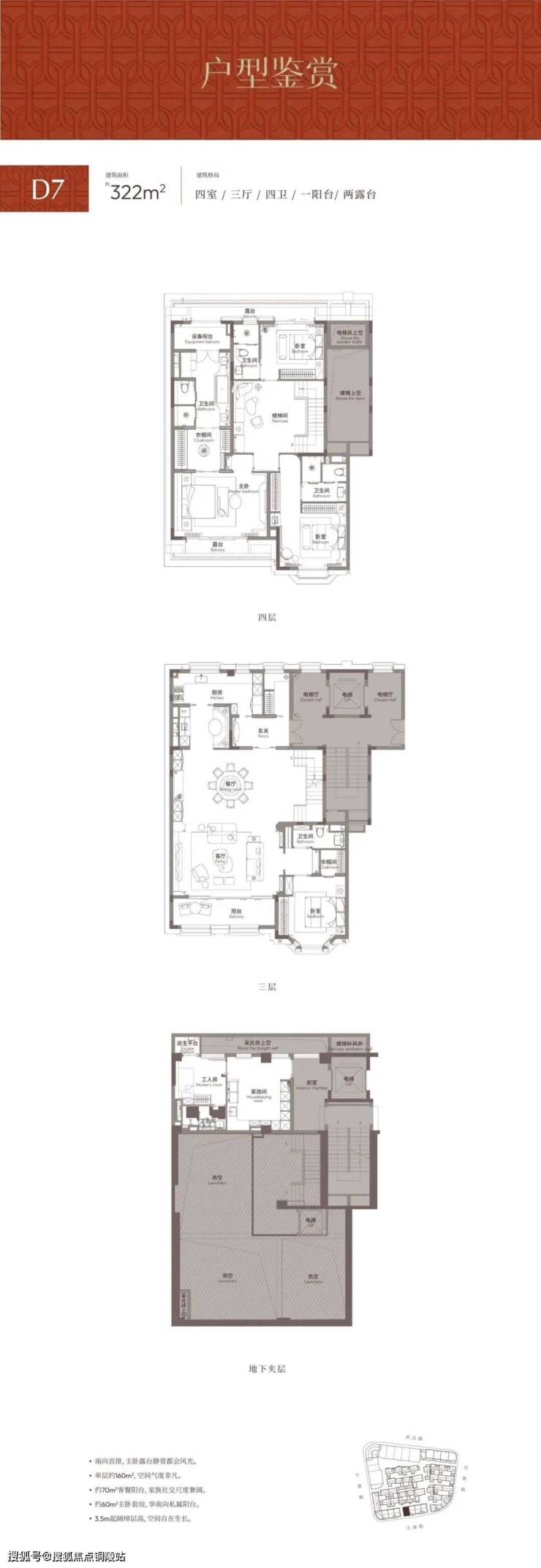 三层约3.5m、四层约3.6m层高,纵向空间感更显阔绰,舒居尺度跃然呈现。
