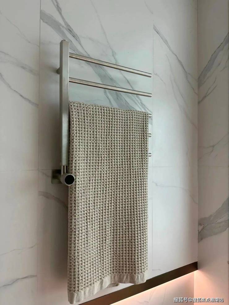 主卧卫生间配备的 电热毛巾架 简直就是遇到潮冷节气的“福音”,让毛巾、内衣都能够提前加热干燥。