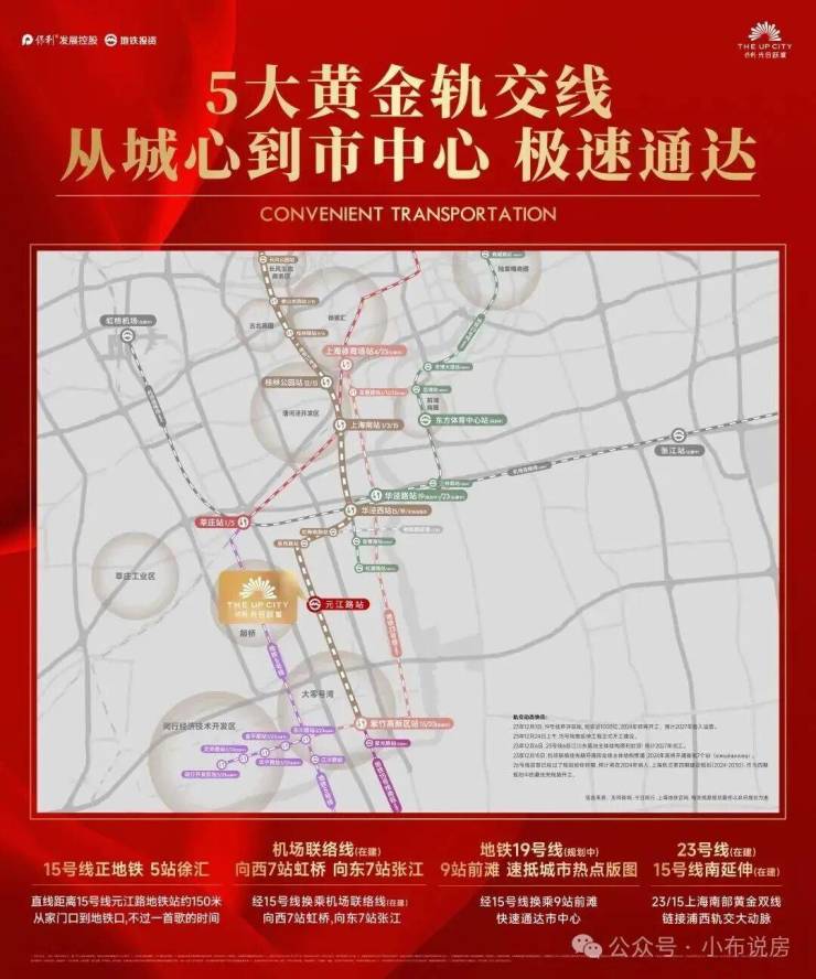 首先是远超同价位同环线的通勤效率:公共出行方面,项目15号线元江路站TOD住宅,完全可以实现步行进站,进站后5站直达徐汇!