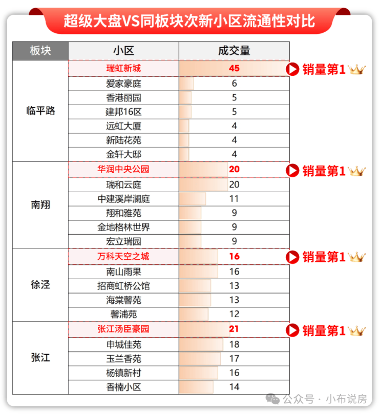 从过往表现来看,但凡能定鼎区域大盘的项目,比如瑞虹新城、汤臣豪园、华润中央公园、万科天空之城,首先销量即流通性区域第一!
