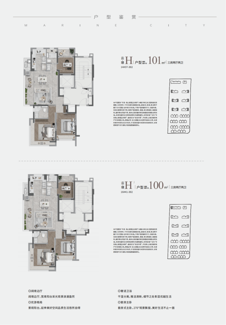 瞰景边套H户型:享有“江景+中轴+墅区”这三重景观资源
