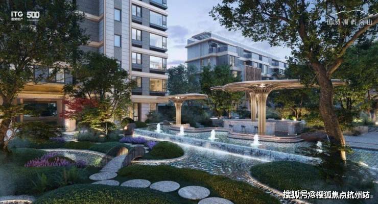 项目拥有一座约1600㎡度假酒店中岛,整个中岛内拥有海岛风层叠水池、社交客厅以及庭院架空层,共鸣多样化松弛生活场景。再以50年树龄的乌柏点缀,整个社区之精致,甚至能媲美豪宅。