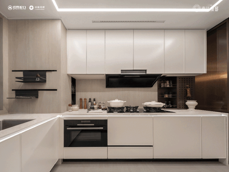 不止是家政间,整个户型空间的收纳交付,也是鲸吞级的,餐边柜,一样是交付标准,奢石台面,配置下水,家人在厨房烧菜,也不妨碍餐边柜泡咖啡、洗茶杯。