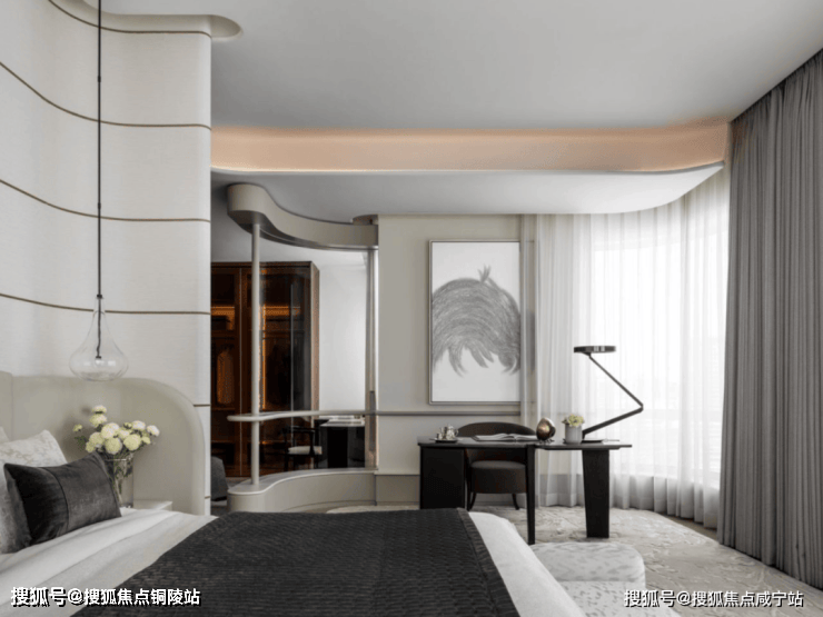 主卧值得点赞,一方面将室内空间与阳台空间巧妙连接起来,实现景观视野更大化,躺在床上也能约270°瞰江。