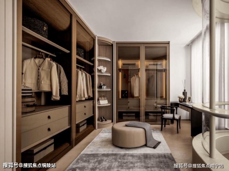 另一方面,主卧尺度超大,并配置了双台盆+浴缸+淋浴+马桶豪华四件套,还有超大衣帽间和化妆台,你可以在房内肆意休闲,相当于把主卧“小家化”了。