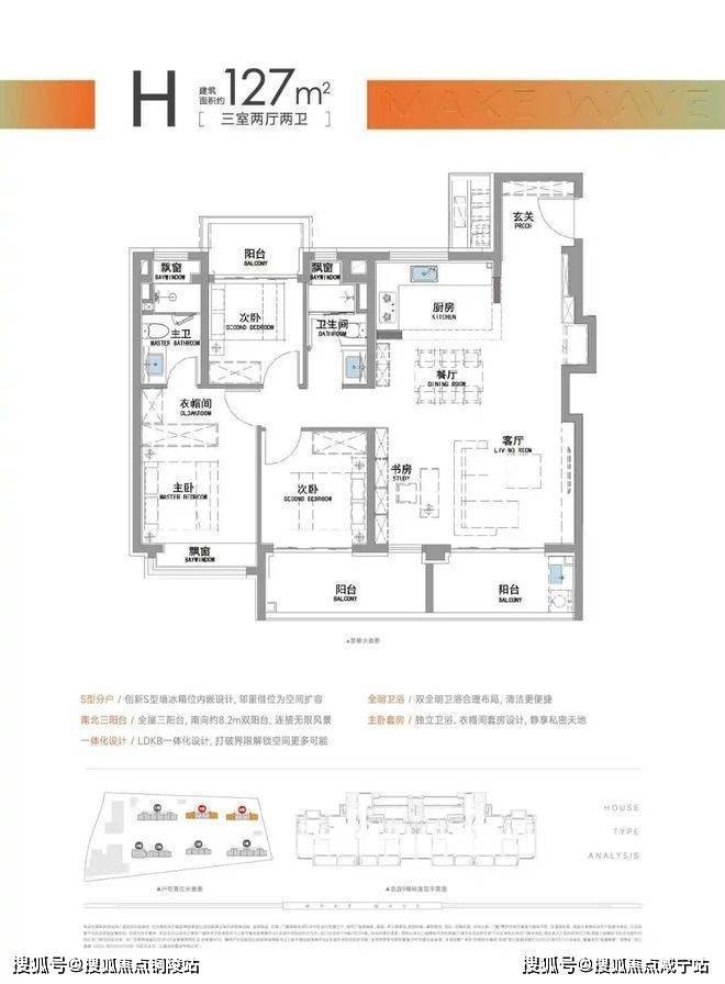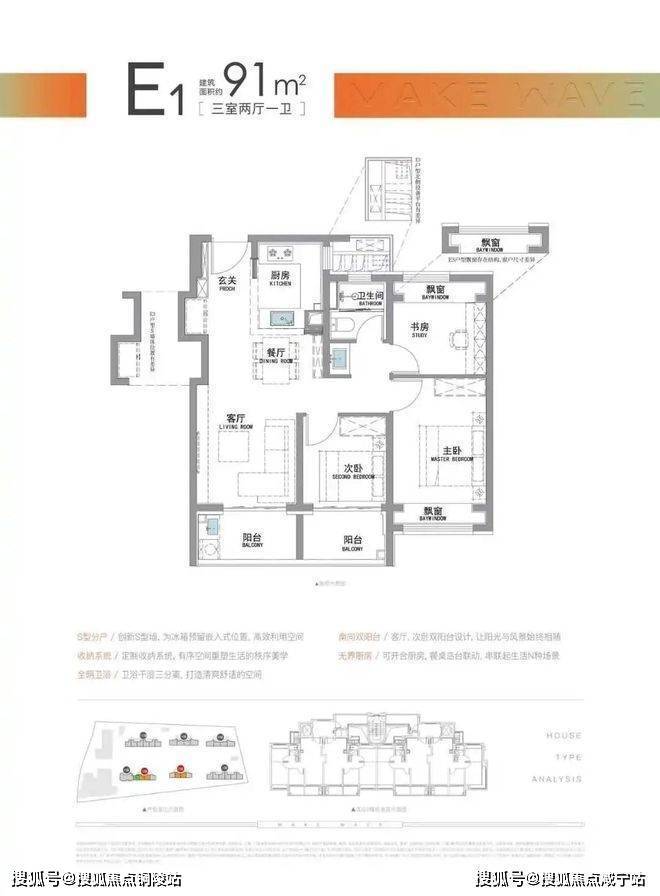 “南向双阳台+南北双飘窗”,构筑真3房户型!