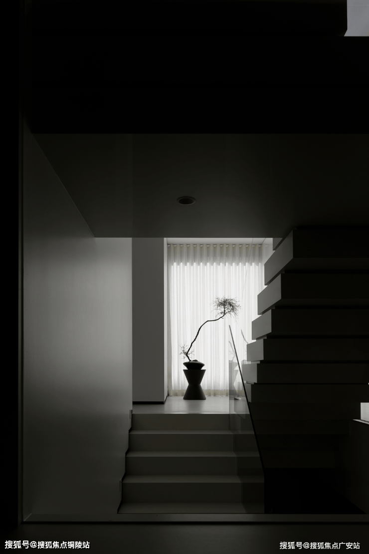 楼梯区完全被几何占据,自然光恰到好处的平衡,进一步呼应着空间的心境,衔接了生活和居所。