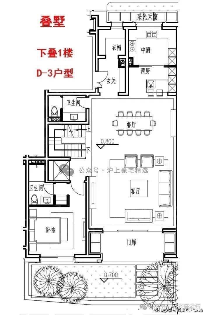 然后是叠加别墅的D-3户型约297㎡下叠。