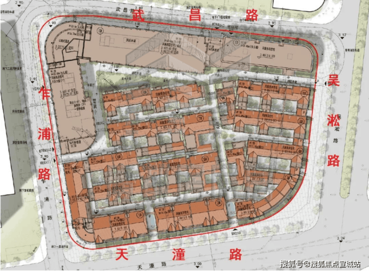 新湖外滩「天潼198」占地面积18951㎡,总建筑面积约105000㎡,容积率2.98,规划有8幢4层里弄住宅,1幢7层洋房,1幢9层小高层,还有底商和酒店。未来将供应38套叠墅、27套里弄合院别墅、59套小高层。