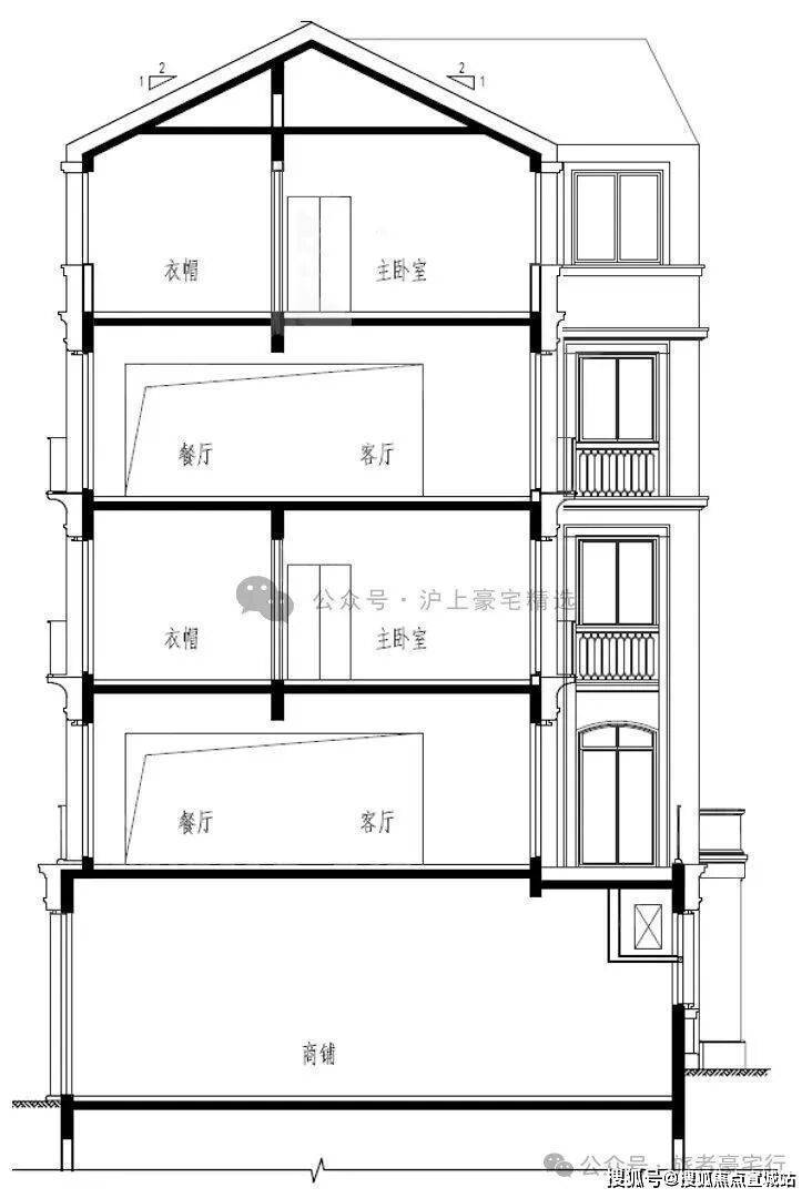 来看看叠加别墅的剖面图。