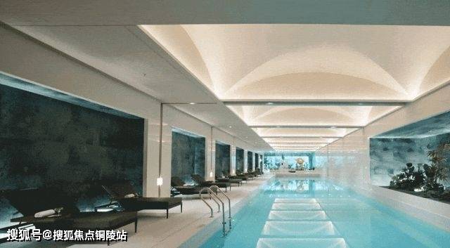 上海首个植物园泳池,以皮革面绿色石材营造树影斑驳的秘境氛围;