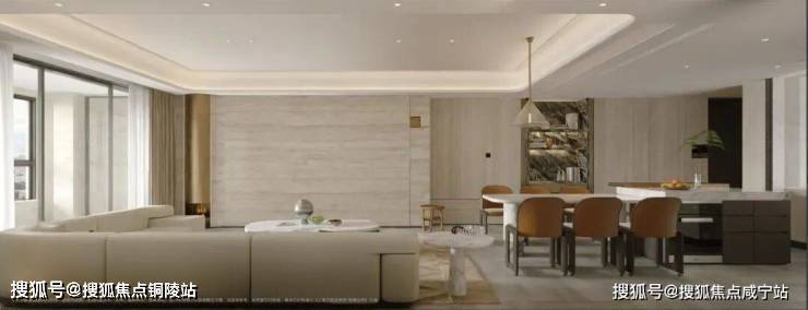 会客空间约有50平,餐客厅一体化足足有近百平,尺度感超强。