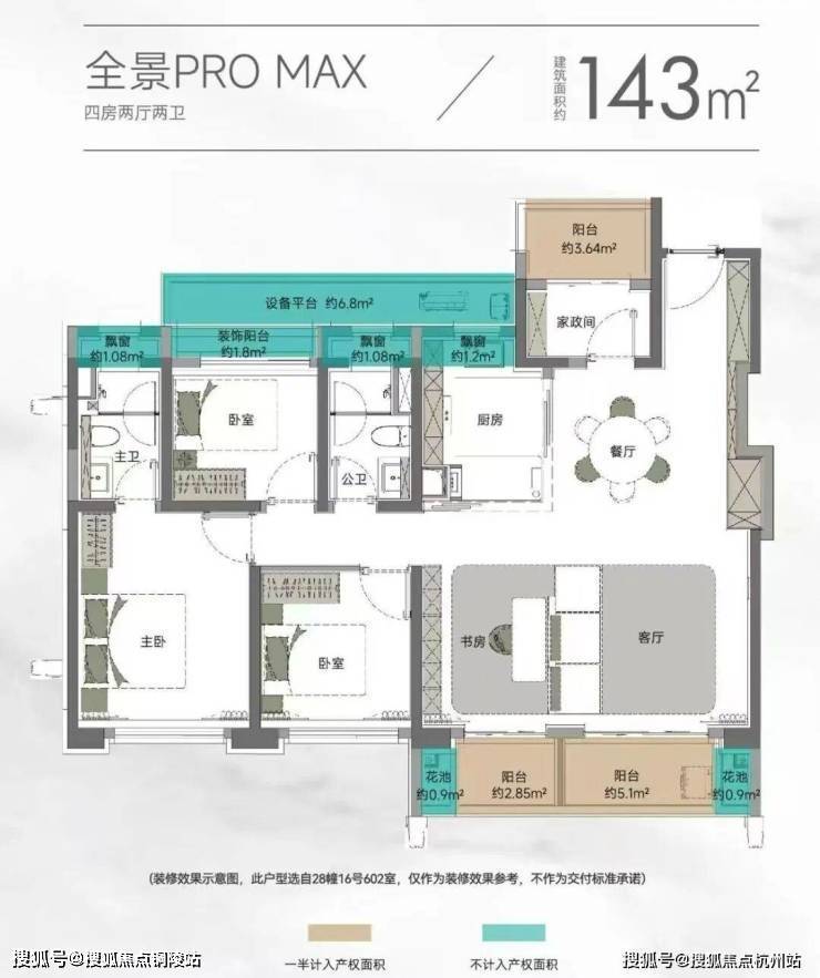 以105㎡的户型为例,“三阳台”搭配花池的设计,直接性价比拉满,按照规定:阳台计一半面积,花池不计面积,加上主卧+卫生间还带飘窗(主卧飘窗非承重结构),如此算下来,对购房者而言,日常可以实打实利用到的面积是远超市面上其他三房产品。