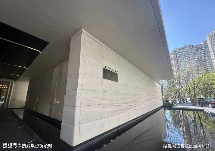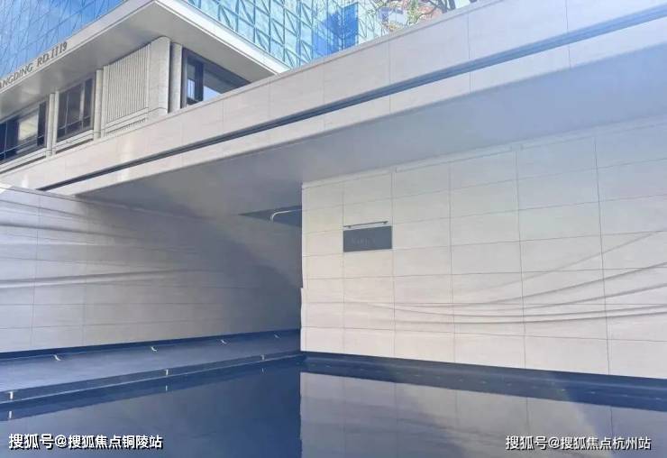 稍微走近一点就能看到采用了大量的弧形元素和石材材料。石材的质感本身就厚重,在上面叠加类似海浪的线条弱化了厚重感,反而显得轻盈。