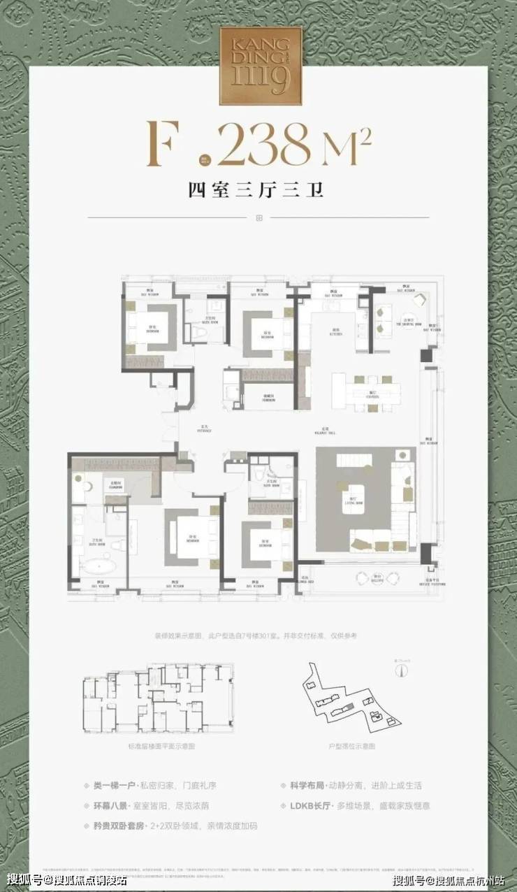 主力:123㎡三房、193㎡四房、238㎡楼王五房,一梯一户 / 两梯两户,私梯入户、玄关独立,私密性极强