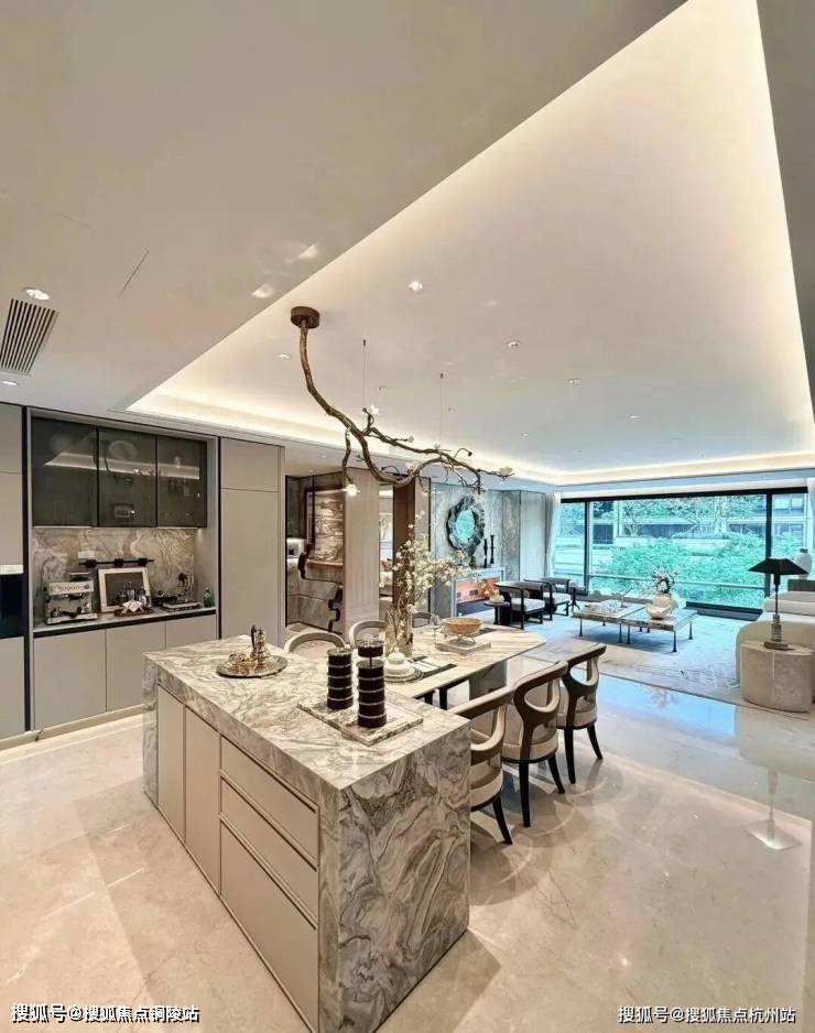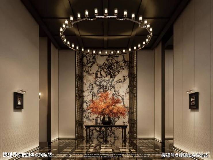 材料选用意大利石材,BVLGARI HOTEL大理石,铝型材塑型红,四层金属网格墙面以及梧桐叶金属屏风等,打造独属老静安的记忆符号,高奢定制,市区豪宅调性拿捏!