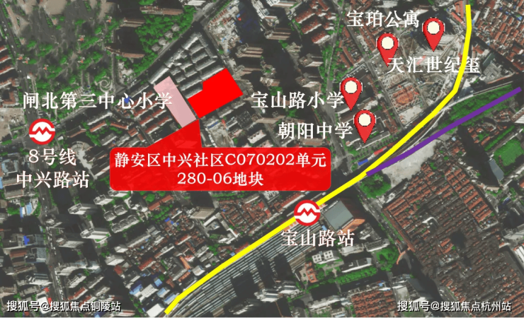 地块北侧象山小区、西侧是静安区闸北第三中心小学。