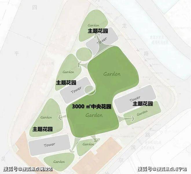 社区景观上,突破市区项目常见的「兵列树阵式」布局,通过建筑楼体的精密偏转,形成罕见的围合式社区形态。