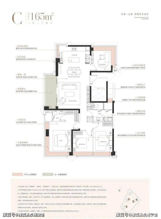 因此,外滩瑞府在建面约165㎡户型中创新推出三四房灵活定制体系。