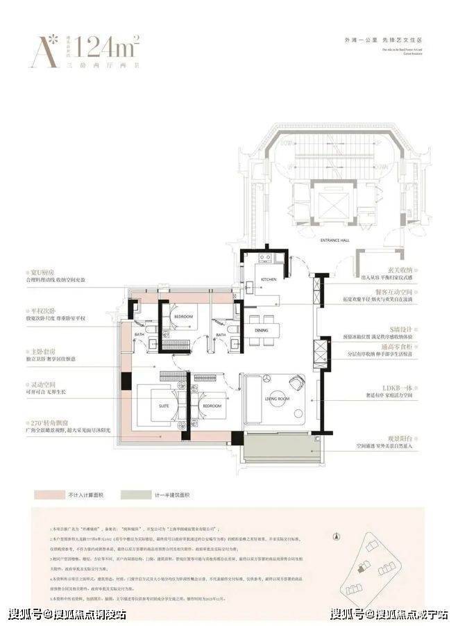 建面约124㎡经典的三房布局,高效满足主流家庭的居住需求,每一房间均设计有观景飘窗,让外滩的天际线成为日常生活的背景。创新的S墙设计与南向次卧“可开可合”的灵活隔断,在有限面积内实现了功能与美感的精妙平衡。