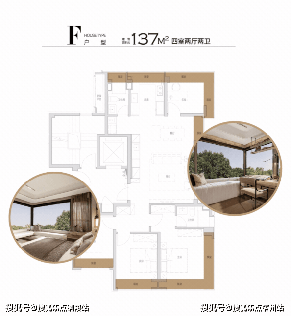 以样板间建面 约137㎡F户型 为例,整个户型拥有8个飘窗,每一个功能空间,堪称飘窗全覆盖。其中, 两个飘窗为270°转角飘窗,等于就拥有了10个飘窗!