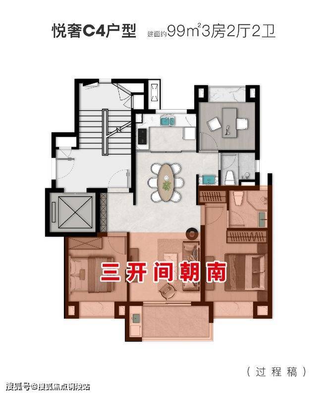 C4户型建面约99㎡3房2厅2卫: