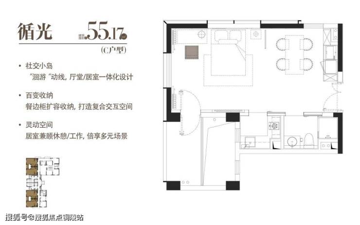 建面约55.17 m²|一室一厅一厨一卫