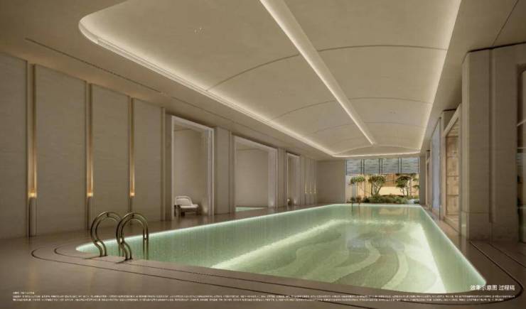 约 1200㎡私享会所,内配沃特罗伦主题健身房、双面采光恒温泳池,连接双下沉式庭院,与九球室、壁球室等多元空间。