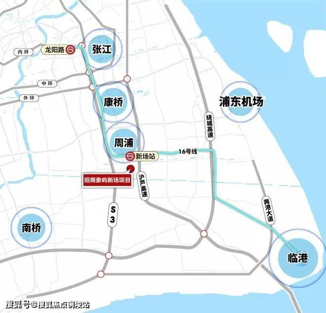 在交通上,项目距离16号线新场站步行约2.3公里,显然依赖地铁出行的话,可能不太现实;但项目临近沪芦高速出入口、申江南路等主干道,自驾的话,可快速直达张江、唐镇、周康等板块!