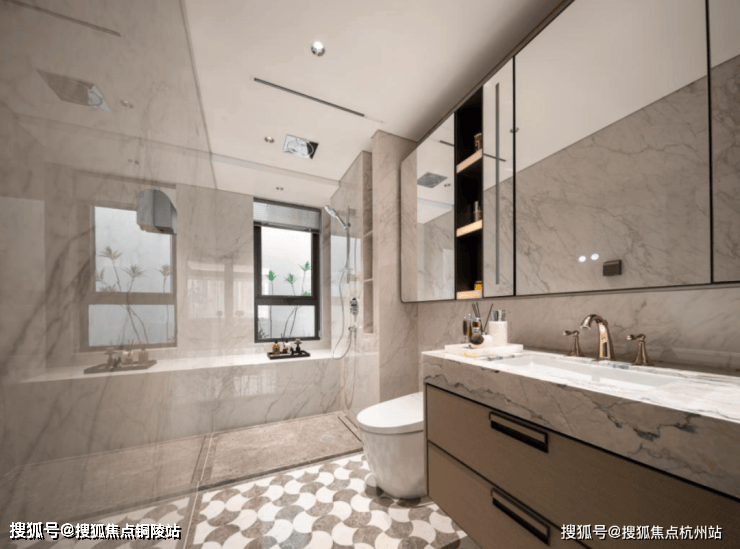 唯宝(或同等品牌)台盆、主卫科勒(或同等品牌)复古龙头、高仪(或同等品牌)智能马桶、奢石台面、镜柜美妆冰箱、线性风暖……每一个细节,招商都为业主考虑到了。