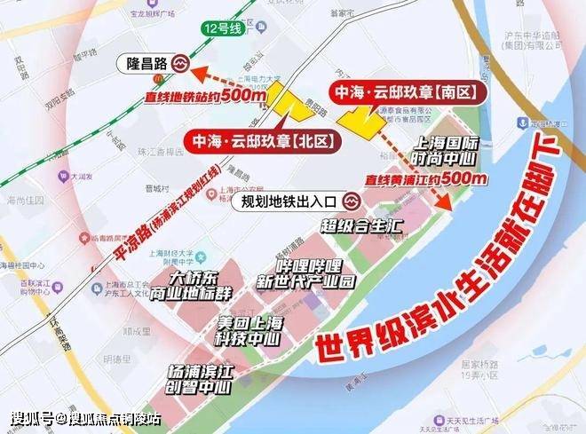中海·云邸玖章距离地铁12号线隆昌路站直线约500米,步行可达,这在杨浦滨江一众不靠轨交的项目中是非常难得的。进站后4站可达北外滩,7站陆家嘴,8站通达人广。