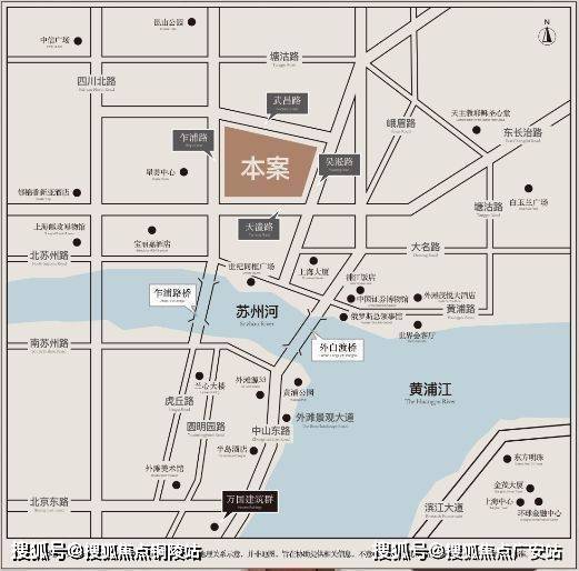 项目具体坐落于天潼路以北,武昌路以南,吴淞路以东,乍浦路以西。独占江(黄浦江)河(苏州河)交汇上佳钻石地段,距离外白渡桥仅200余米。
